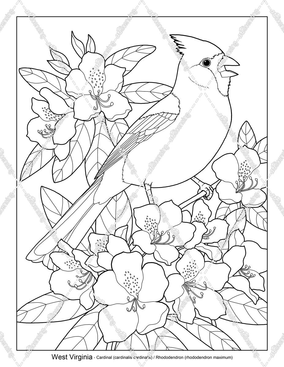 6282011 81743 PM. The United States Postal Service created the definitive renderings of our 50 Official State Flowers and Birds with the classic 50-stamp issue of State Birds and Flowers. VA STATE FLOWER TREE AND BIRD The Cardinal and Dogwood.